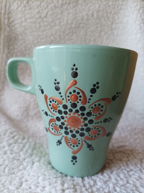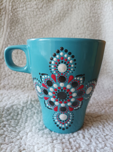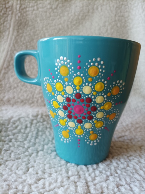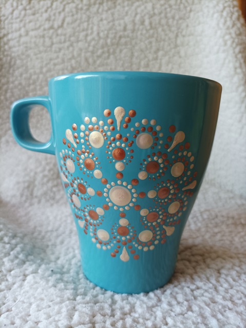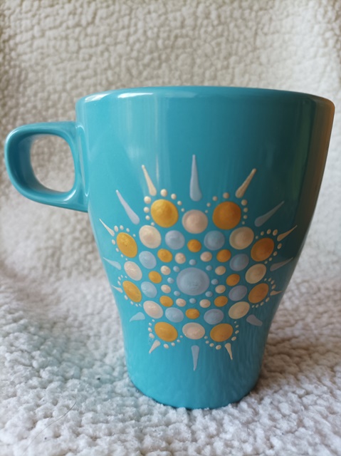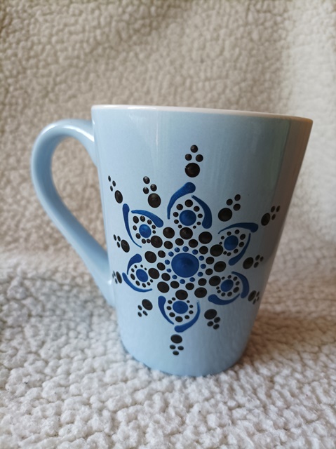 1.Világoskék, mandalás bögre, 2,5