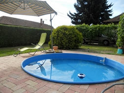 medencés (kb. 3 m átmérőjű és 75 cm mély) ház 6-8 főre Siófok csendes