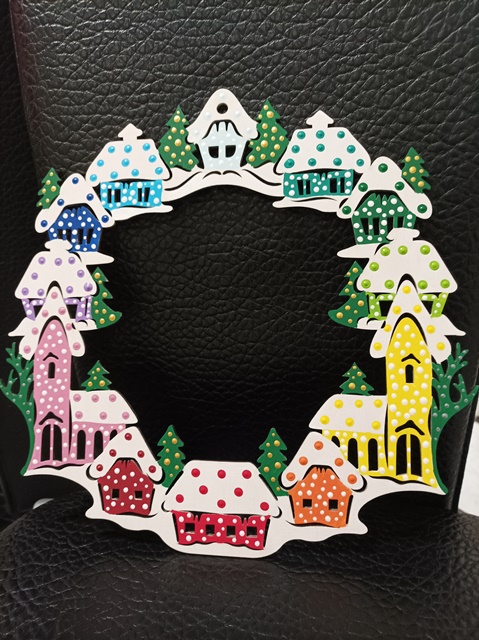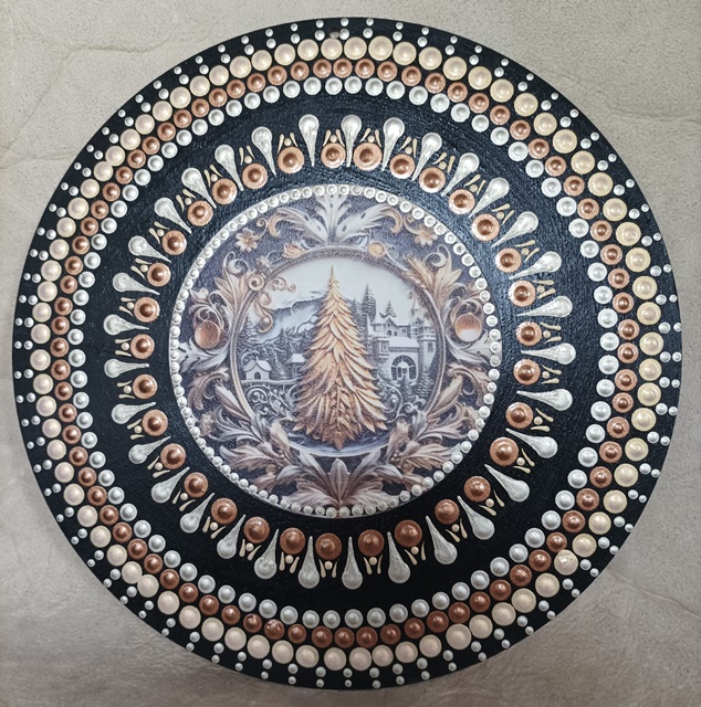 falra akasztható téli dísz, fa alapon, 24 cm-es