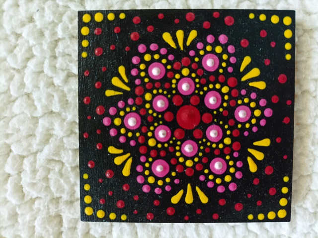 Kézzel festett, fa hűtőmágnes, 6x8 cm